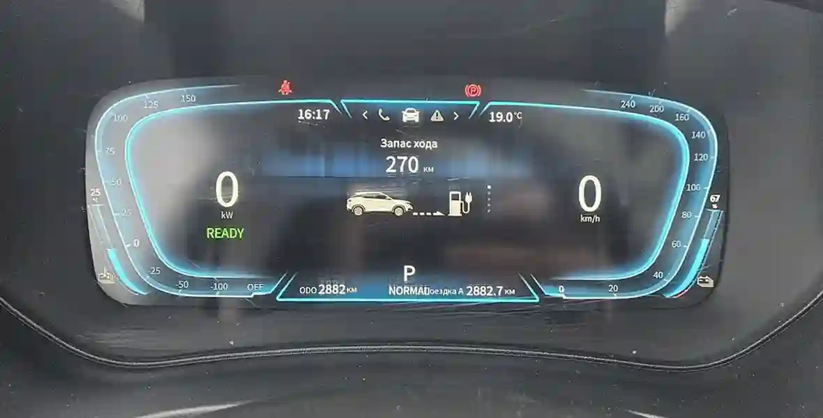 По паспорту батареи емкостью 53 кВт⋅ч должно хватить на 407 км. Полноценно замерить расход возможности не было, поскольку мы постоянно менялись автомобилями, а не ездили на одном. К примеру, один из наших отрезков пути на i‑JOY начинался с такими показаниями: заряд батареи в 67% и оставшийся запас хода в 270 км. Проехав сто километров по горным дорогам, уровень упал до 19%. Вывод тут прост. Как и с любой другой «электричкой», расход энергии будет зависеть от вашей манеры езды, скорости и погодных условий. Кстати, уже в следующем году i‑JOY планируют оснастить батареей увеличенной емкости, причем она будет российского производства.