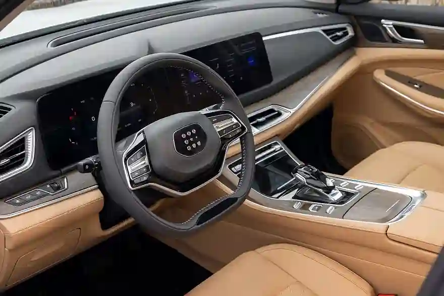 Ну а что внутри? Архитектура салона тоже не претендует на особую оригинальность, но все сделано очень добротно. Качественные мягкие материалы, приятная и на вид, и на ощупь бежевая кожа (даже и не скажешь сходу, натуральная она или нет), правдоподобные вставки «под дерево». Огромная панорамная крыша с люком площадью 1,14 кв.м делает салон еще более светлым и воздушным. А вот приспособленность к российским зимам можно назвать недостаточной: обогрев передних сидений есть, устойчивость ходовой батареи к холодам, если верить обещаниям производителя, тоже обеспечена на приличном уровне, но обогрева руля и ветрового стекла – нет.