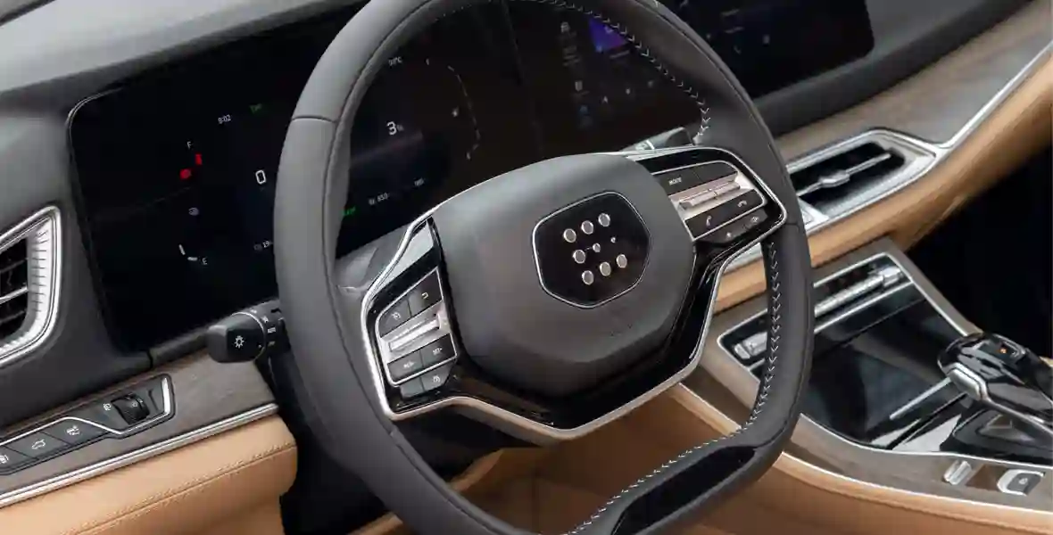 Впрочем, понятно, что все вопросы — к Дуньфэню. В отличии от навороченного Aito M7, Landian E5 — это предельно простой и бюджетный автомобиль. Отсюда и небольшая «батарейка», и небогатая (хоть и вполне приличная на вид) отделка салона c обилием «аквапринта» под дерево и искусственной кожи. И простенькие настройки ходовой части: если Aito на своих пружинах едет будто на дорогой пневмоподвеске, то сделанный на той же платформе i‑SPACE встряхивает пассажиров на каждой второй неровности. Плоховато, но в целом жить можно — какие-нибудь Peugeot и Citroen для европейского рынка с нашими дорогами справляются в похожей манере.