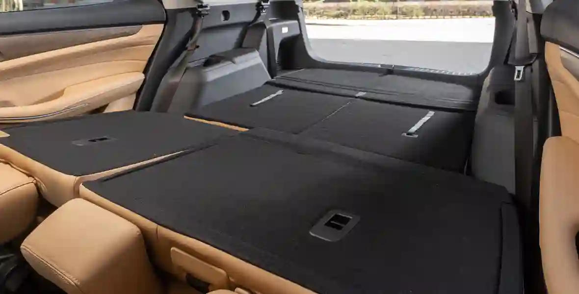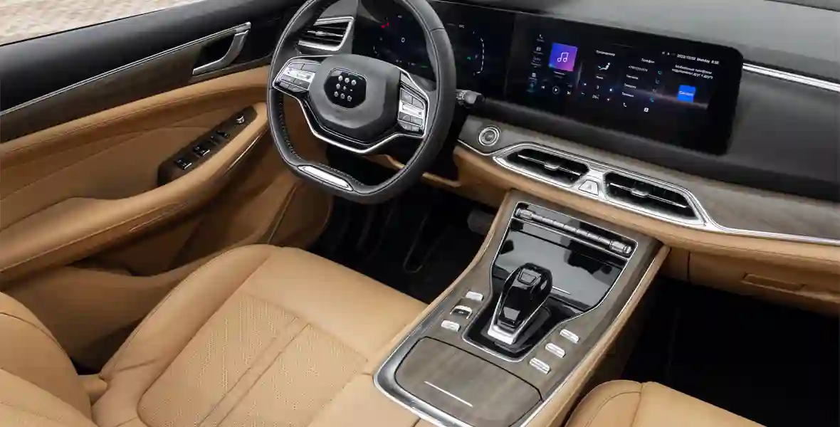 Сидеть за рулем EVOLUTE i‑SPACE удобно, диапазона регулировок хватает водителю ростом 186 см. Впрочем, запаса при этом уже не остается. Кресла уютные, но без поясничного подпора. С подогревом, однако управляемым через меню: сначала надо зайти в раздел контроля климата. Что странно, потому что большая часть функций комфорта выведена на кнопки. Интерьер достойный: пластики мягкие, зазоры ровные, декоративные вставки под матовое дерево так хороши, что кажутся натуральными. Руль выглядит дорого, а серебристые дефлекторы вентиляции с ребрышками по периметру – даже премиально. Функциональность салона тоже на высоте. Места во втором ряду предостаточно, а на третьем поместятся двое некрупных взрослых (при условии, что средний ряд будет слегка сдвинут вперед). Ну а при сложенном третьем ряде открываются космические просторы багажника. В Китае его объем принято измерять под крышу, и при таком подходе получается 934 л. В привычной нам системе координат – около 600-650 л.