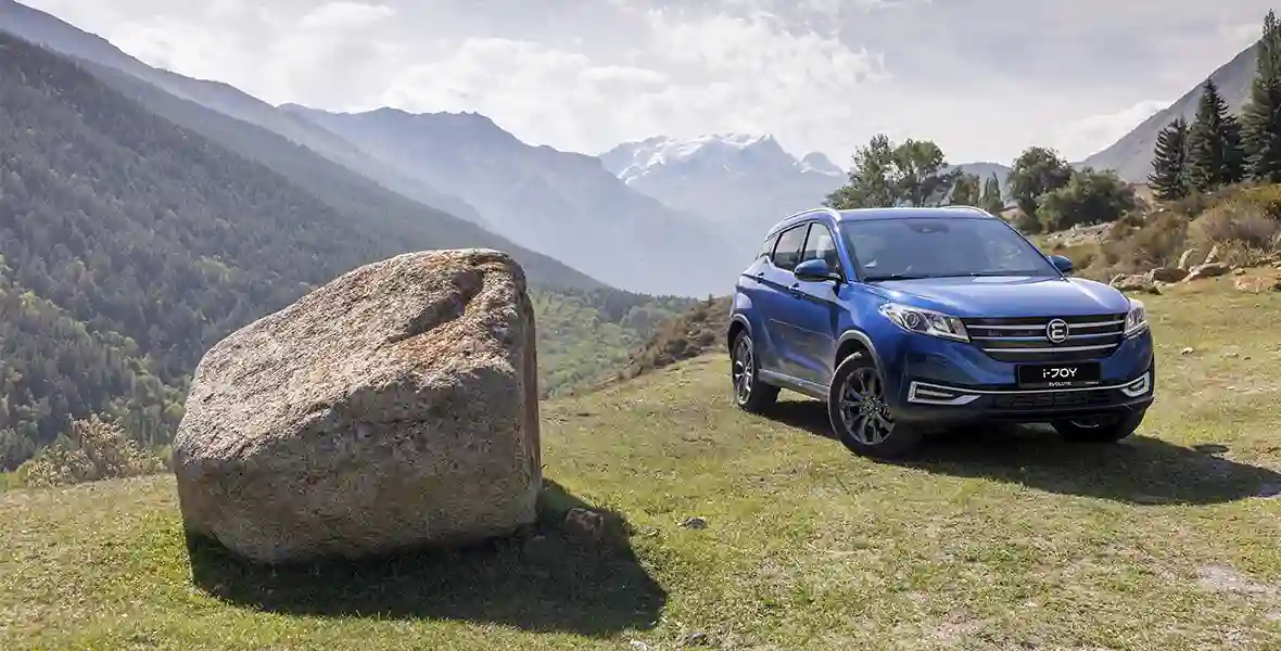 Переднеприводный SUV B-класса i‑JOY — компактный городской кроссовер. Почти 4,4 м в длину, колесная база короче, чем у седана, — 2655 мм. Та же 53-киловаттная батарея, но запас хода скромнее, 407 км. Опытным путем удалось установить, что медленнее всего заряд убывает на скорости 80—90 км/ч. Электромотор у i‑JOY помощнее, чем у родственного седана, — 163 л.с., 195 Нм. И хотя этот SUV почти на 200 кг тяжелее, динамика разгона у него чуть лучше — от 0 до 100 км/ч за 8,9 секунды, а максимальная скорость уже 155 км/ч. Та же, что и в i‑PRO, опция, автономная печка, которая прогревает не только салон, но и тяговую батарею. Питается соляркой из бака, установленного под капотом. Багажник поскромнее, 535 литров, но большой плюс в том, что тут, в отличие от седана опять же, можно сложить спинки заднего ряда, увеличив полезный объем до 1225 литров.